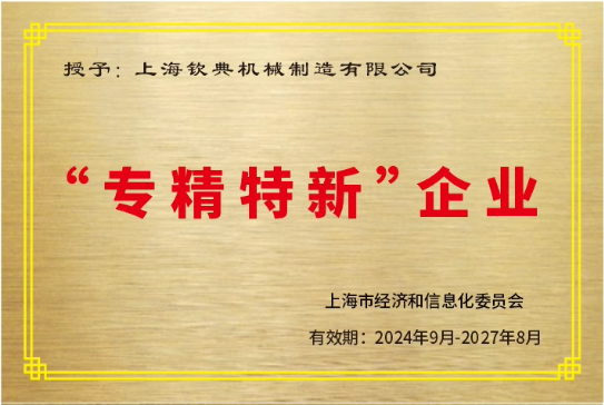 《上海欽典機械制造有限公司榮獲 “專精特新” 企業(yè)稱號》
